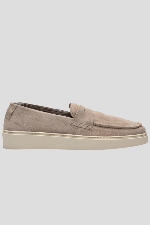 Детали: Мужские бежевые замшевые лоферы San Remo от Bogner (Богнер). Закругленный носок, резиновая подошва белого цвета, стелька с логотипом бренда
