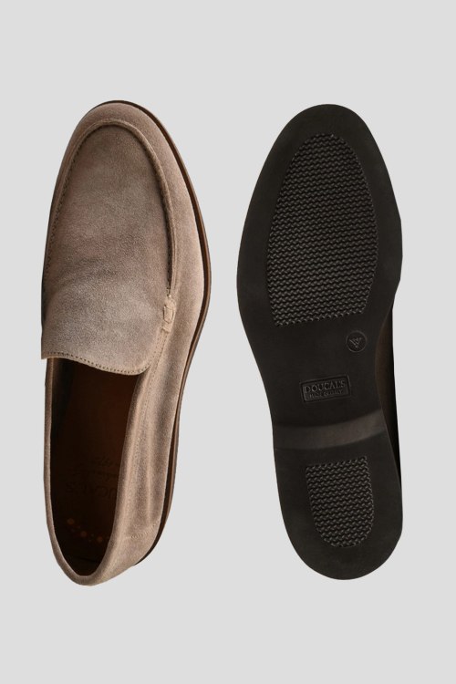 Детали: Мужские бежевые замшевые лоферы от Doucal's (Дукалс). Классический дизайн, миндалевидный носок, кожаная стелька