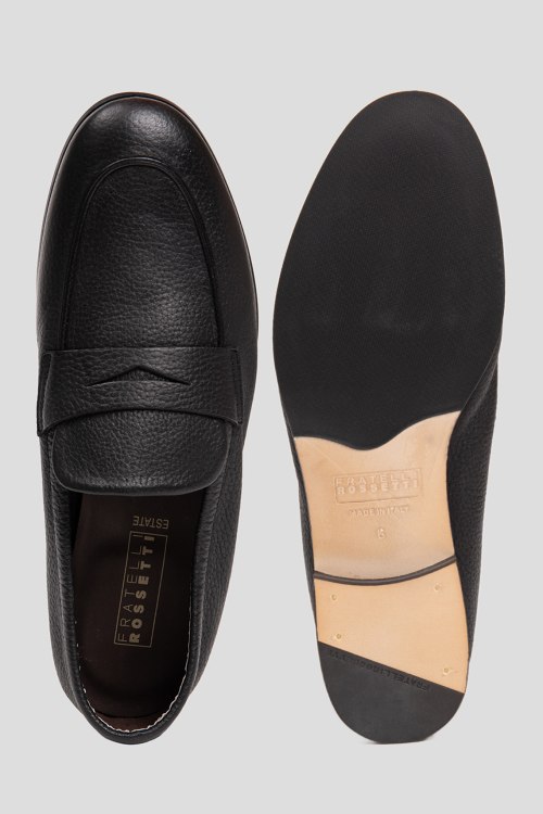 Детали: Мужские черные кожаные лоферы от Fratelli Rossetti (Фрателли Роззетти). Модель из зернистой кожи, классический дизайн, миндалевидный носок