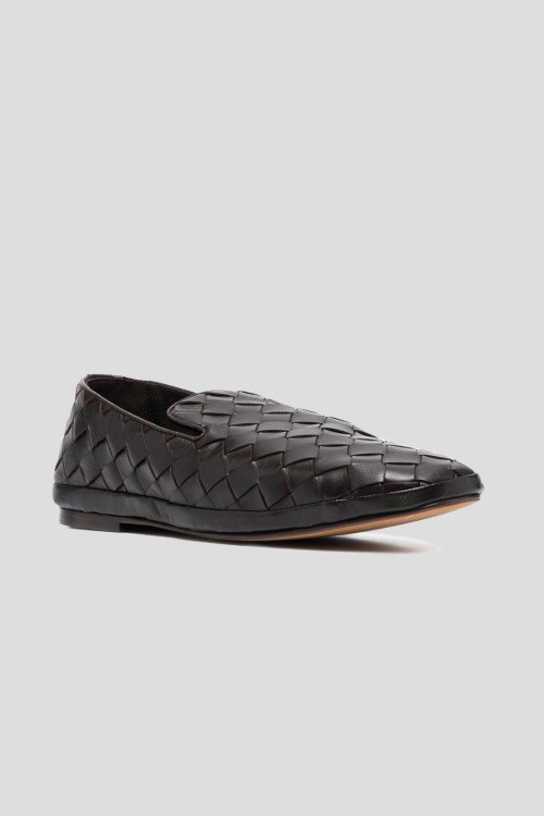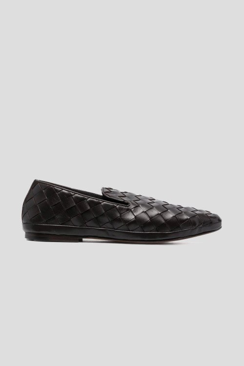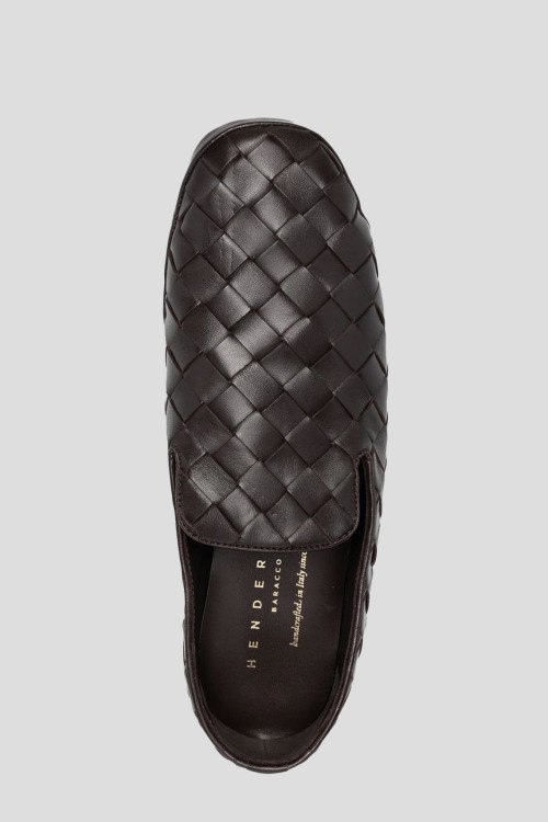Мужские черные лоферы Guinea из натуральной кожи от Henderson Baracco (Хендерсон Баракко). Миндалевидный носок, плетеный дизайн, кожаная стелька с логотипом бренда, блочный каблук