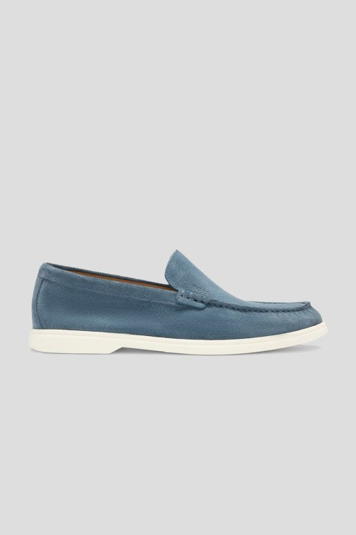 Детали: Мужские голубые замшевые лоферы Sienne от Hugo Boss (Хуго Босс). Тиснение логотипа, миндалевидный носок, кожаная стелька