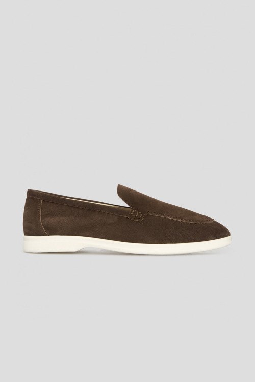 Детали: Мужские коричневые лоферы из натуральной замши от Barba Napoli (Барба Наполи). Миндалевидный носок, светлая подошва, кожаная стелька с логотипом