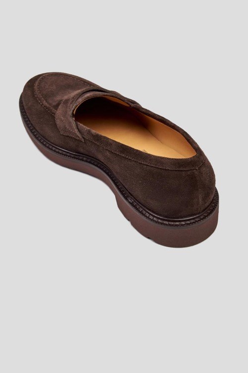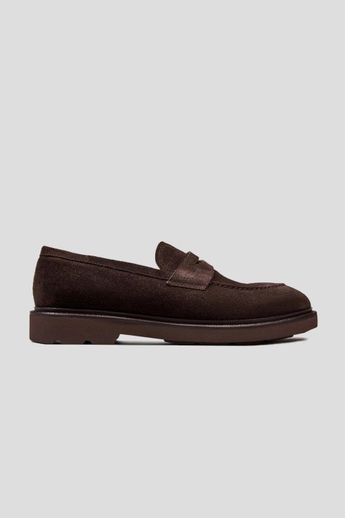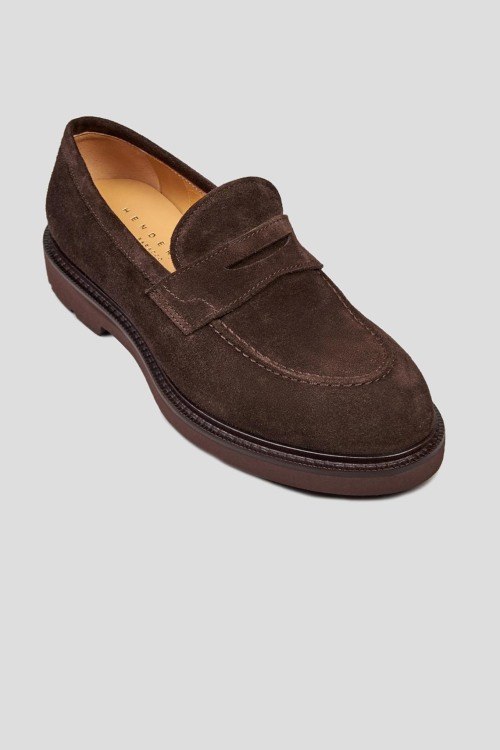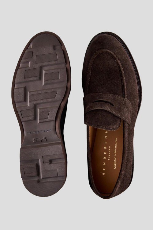Детали: Мужские коричневые лоферы из натуральной замши от Henderson Baracco (Хендерсон Баракко). Миндалевидный носок, кожаная стелька, рельефная подошва