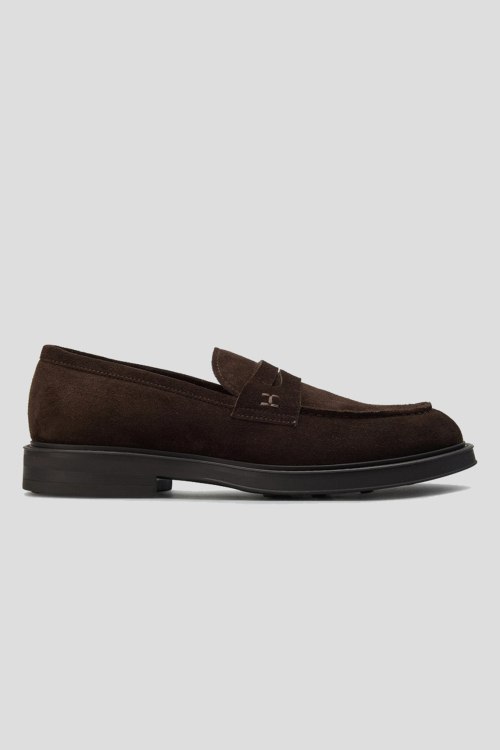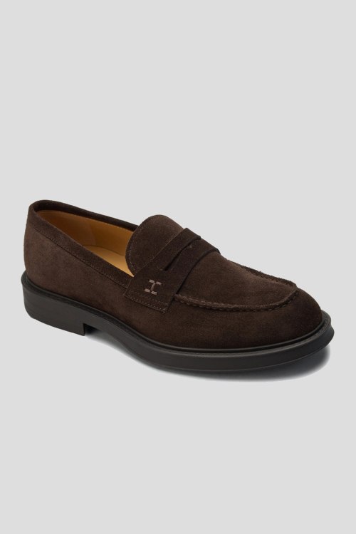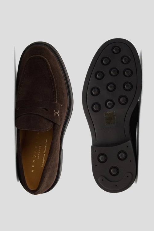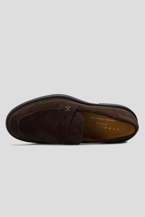Детали: Мужские темно-коричневые замшевые лоферы от Henderson Baracco (Хендерсон Баракко). Тональная строчка, закругленный носок, кожаная стелька