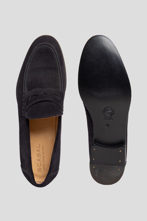Детали: Мужские темно-коричневые замшевые лоферы от Scabal (Скабал). Классический дизайн, миндалевидный носок, кожаная стелька с логотипом, квадратный каблук, темная подошва