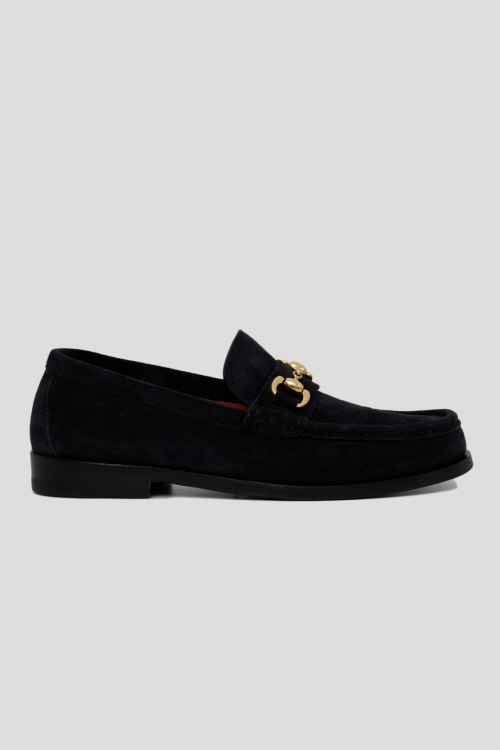 Детали: Мужские темно-синие лоферы из натуральной замши от Henderson Baracco (Хендерсон Баракко). Классическая модель, металлическая декоративная деталь спереди, закругленный носок, широкий каблук, плоская подошва