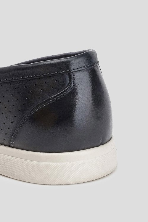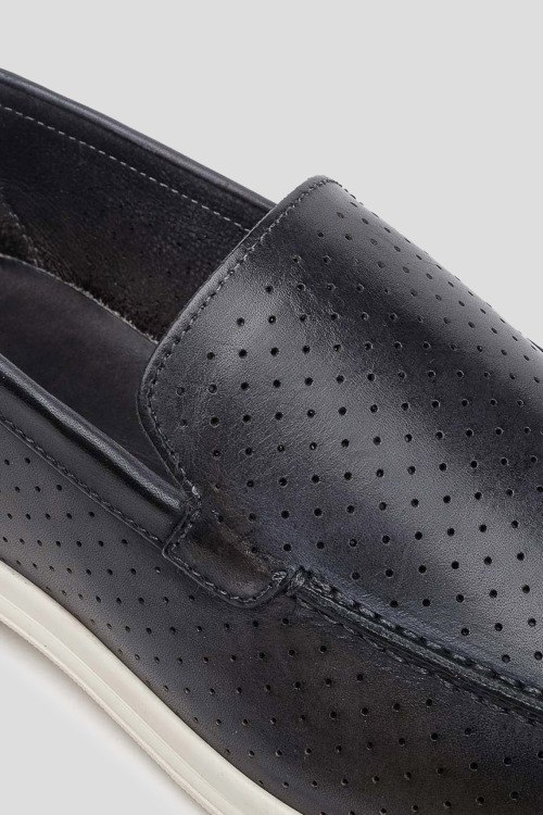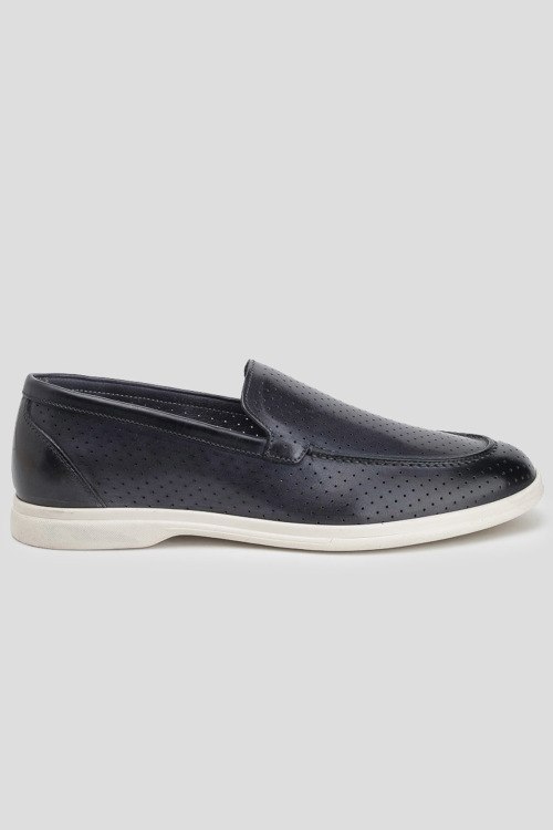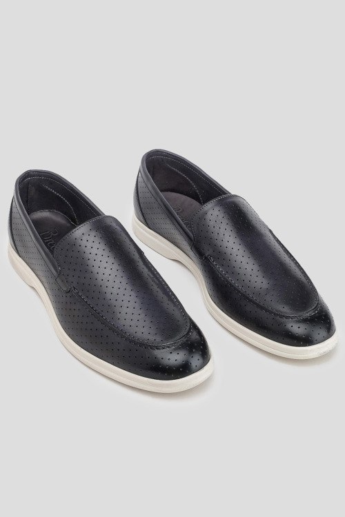 Детали: Мужские темно-синие лоферы из натуральной кожи от Brecos (Брекоз). Миндалевидный носок, кожаная стелька с логотипом бренда, перфорированный дизайн, контрастная подошва