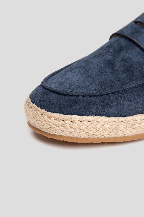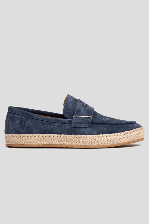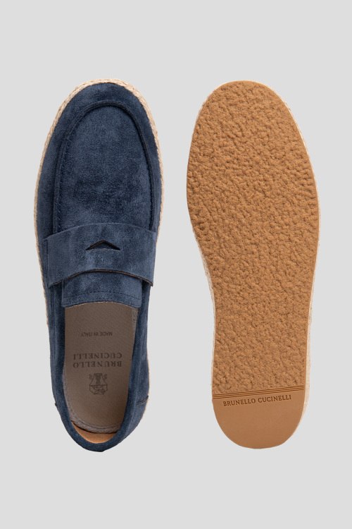 Детали: Мужские темно-синие замшевые лоферы от Brunello Cucinelli (Брунелло Кучинелли). Модель из мягкой замши, закругленный носок, плетеная подошва из рафии. Обувь категории outlet, коробка может быть повреждена
