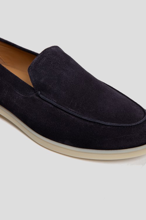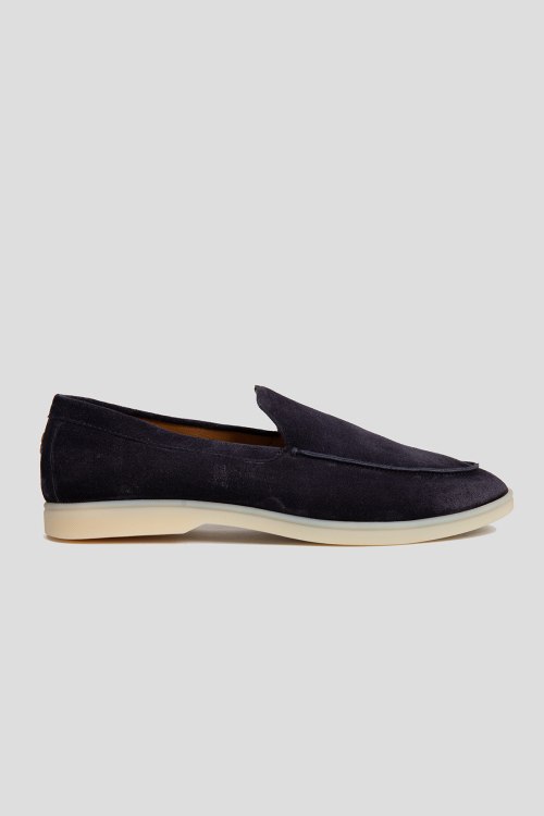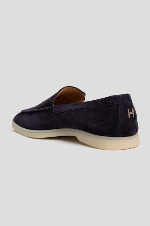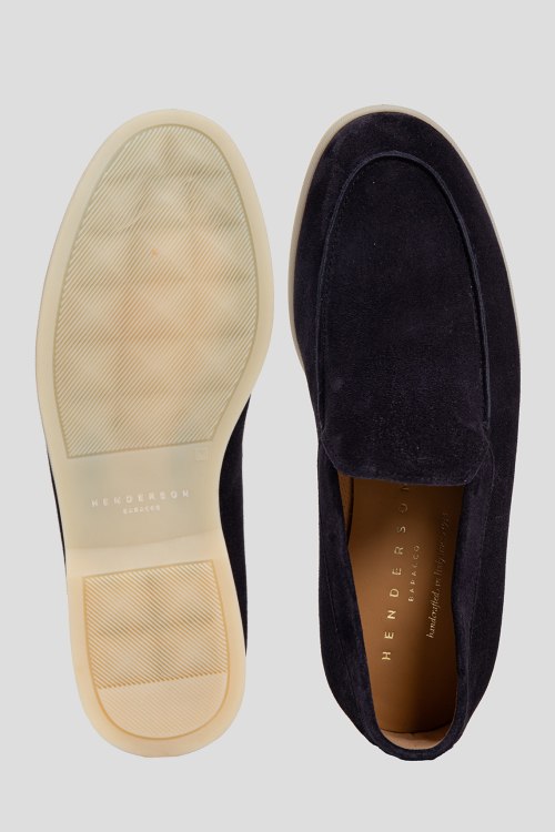 Детали: Мужские темно-синие лоферы из натуральной замши от Henderson Baracco (Хендерсон Баракко). Миндалевидный носок, кожаная стелька, вышитый лого