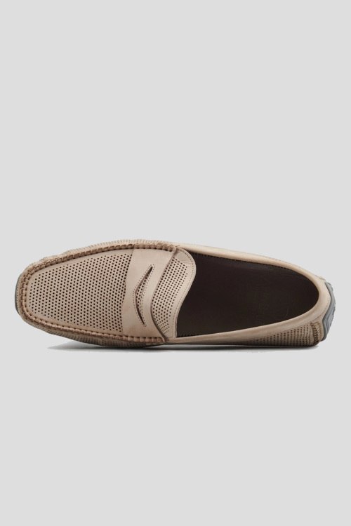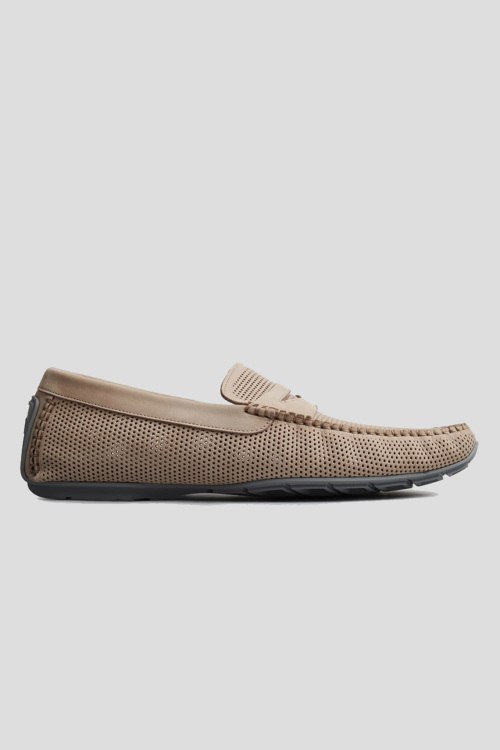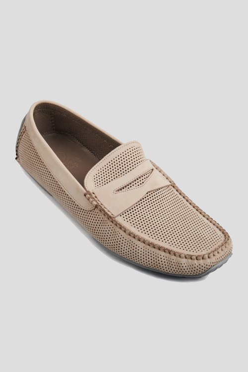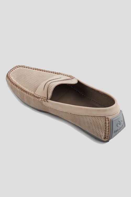 Детали: Мужские бежевые мокасины из замши от Aldo Brue (Алдо Бруе). Миндалевидный носок, перфорированный дизайн, резиновая подошва, кожаная стелька с логотипом