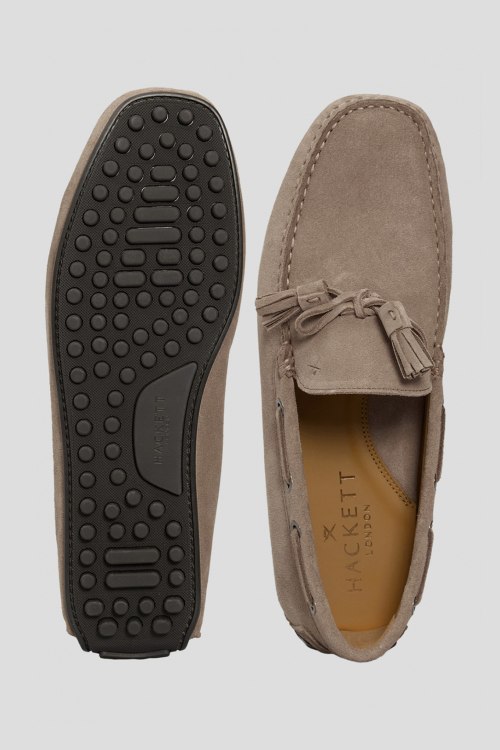 Детали: Мужские бежевые замшевые мокасины от Hackett (Хаккетт). Тиснение логотипа, декор кисточками, закругленный носок, кожаная стелька. Высота подошвы: 1 см