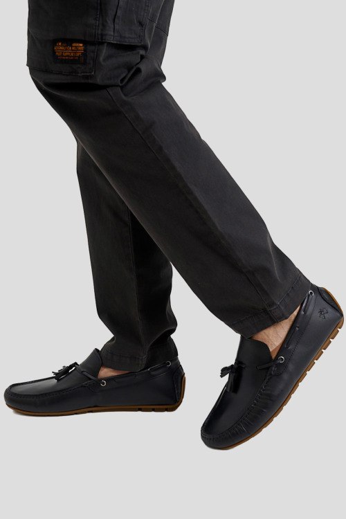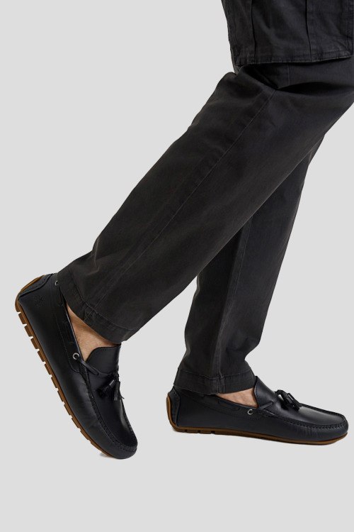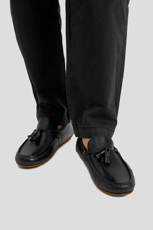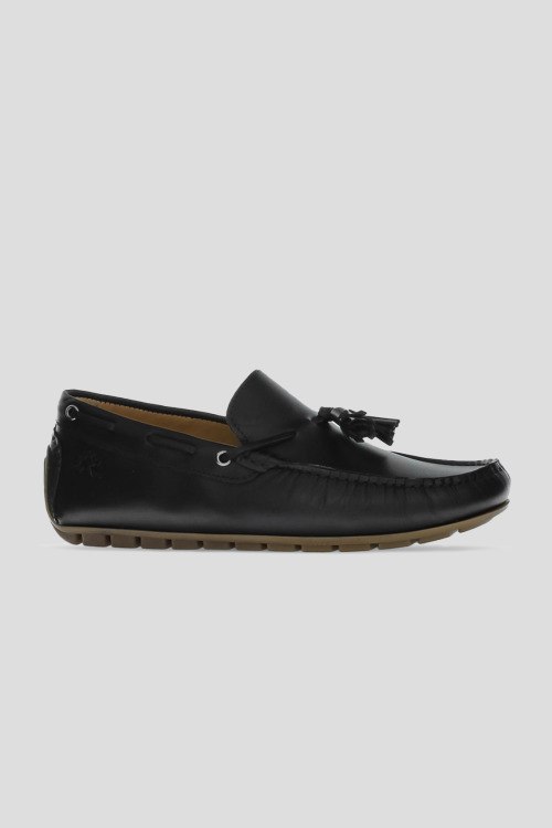Детали: Мужские черные кожаные мокасины от La Martina (Ла Мартина). Модель из гладкой кожи, декор кисточками, закругленный носок, рельефная подошва