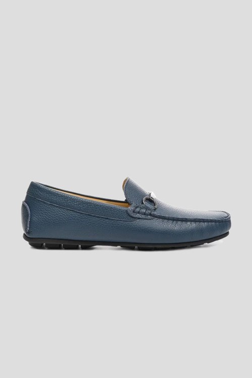 Детали: Мужские синие мокасины из натуральной кожи от Corneliani (Корнелиани). Миндалевидный носок, кожаная стелька с логотипом, металлическая пряжка спереди, рельефная подошва