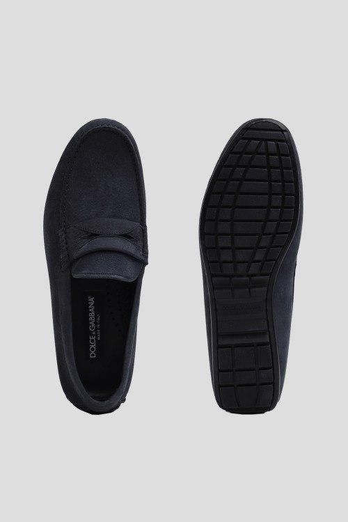 Детали: Мужские темно-синие мокасины из натуральной кожи от Dolce & Gabbana (Дольче энд Габбана). Классическая модель, закругленный носок, стелька с логотипом. Замеры для размера 5: стелька 27 см