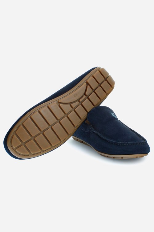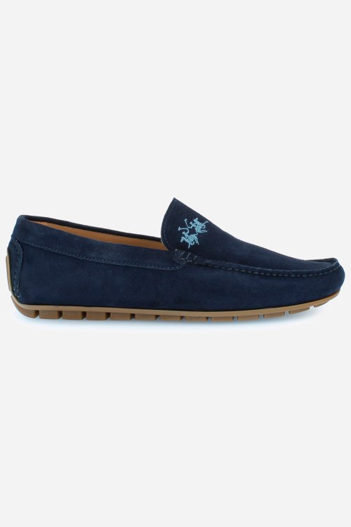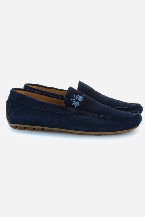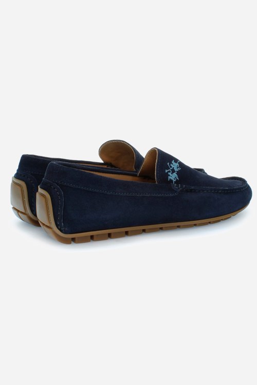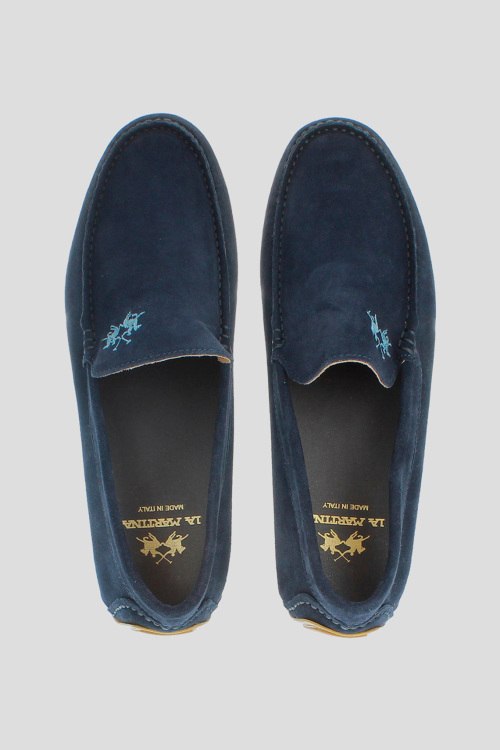 Детали: Мужские темно-синие замшевые мокасины от La Martina (Ла Мартина). Модель из мяшкой замши, вышитый логотип, закругленный носок, кожаная стелька