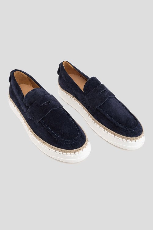 Детали: Мужские темно-синие мокасины Layton Mok из натуральной замши от Voile Blanche (Вуаль Бланш). Закругленный носок, кожаная стелька с лого, белая резиновая подошва