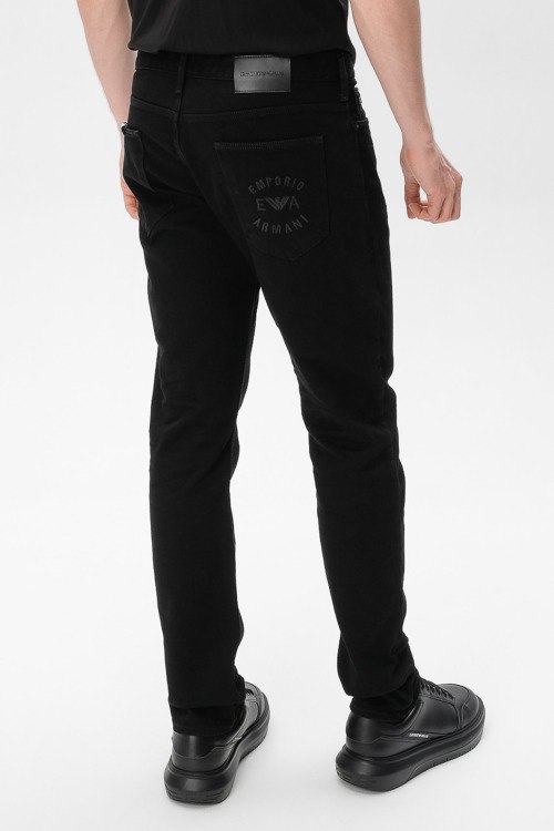 Детали: Мужские черные джинсы Slim Fit J06 от Emporio Armani (Эмпорио Армани). Пяти-карманная модель, пояс с петлями для ремня, вышитый логотип на заднем кармане, классическая длина