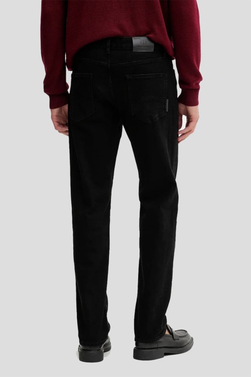 Детали: Мужские черные прямые джинсы от Armani Exchange (Армани Эксчендж). Пяти-карманная модель, пояс с петлями для ремня, нашивка с логотипом сзади на поясе, прямой крой, полная длина