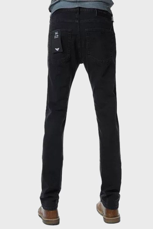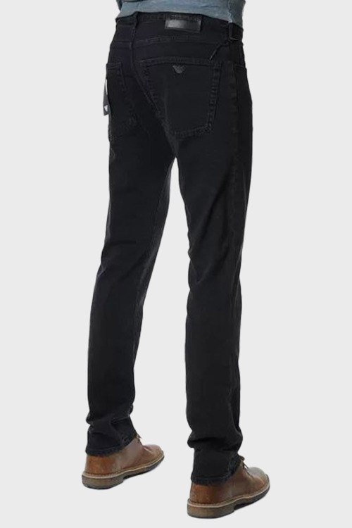 Детали: Мужские черные зауженные джинсы от Emporio Armani (Эмпорио Армани). Пяти-карманная модель, пояс с петлями для ремня, нашивка с логотипом сзади на поясе, зауженный фасон, полная длина