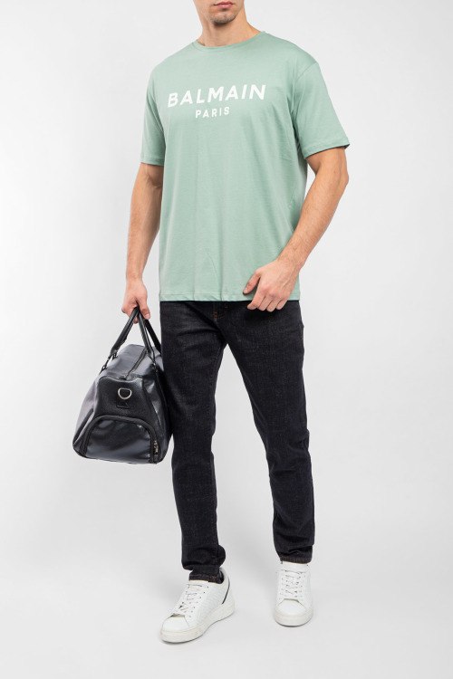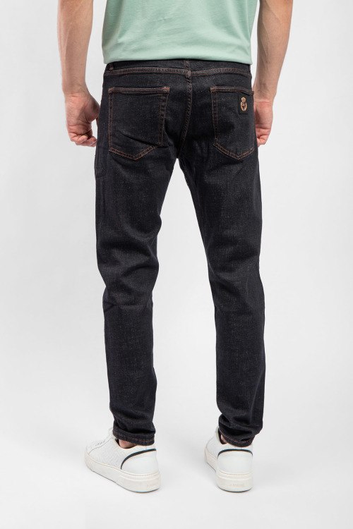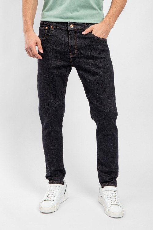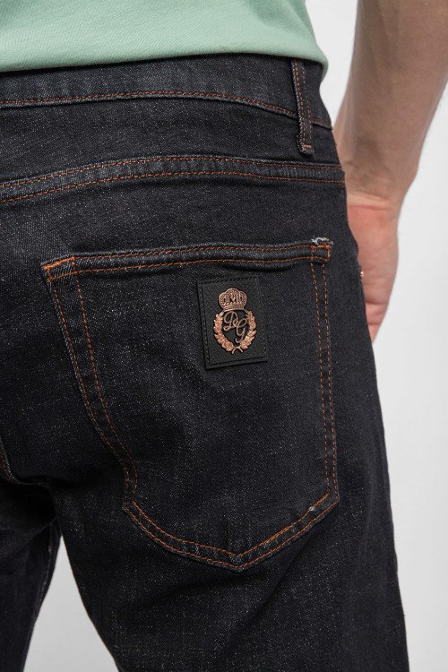 Мужские черные зауженные джинсы от Dolce & Gabbana (Дольче энд Габбана). Пяти-карманная модель, пояс с петлями для ремня, нашивка с логотипом на заднем кармане, зауженный крой, полная длина.