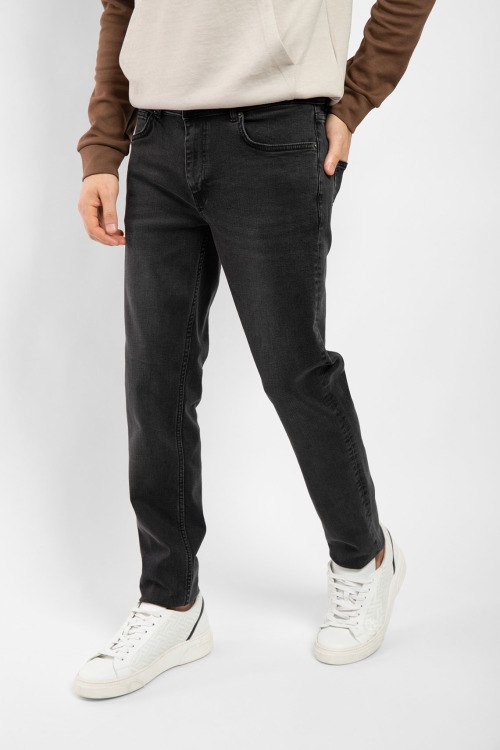 Мужские черные джинсы из хлопкового микса от Fred Mello (Фред Мелло). Классическая длина, застежка на молнию и пуговицу, пять карманов, петли в поясе для ремня, патч-лого.