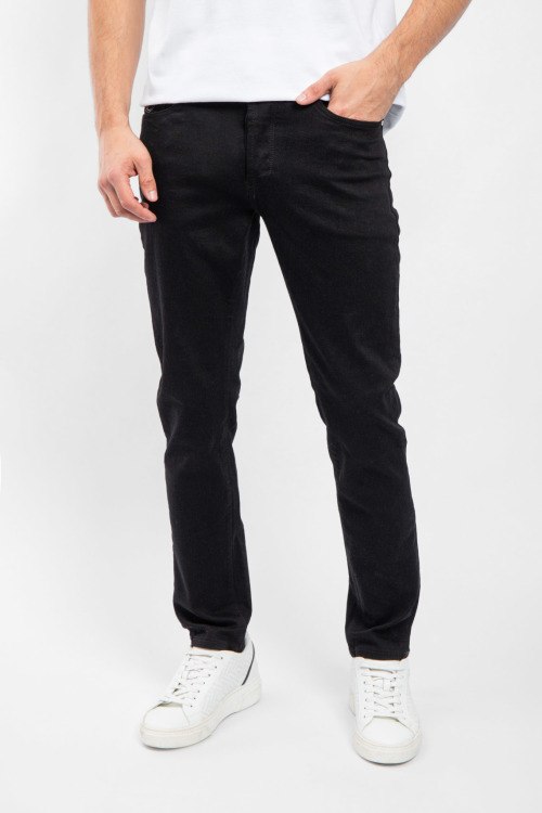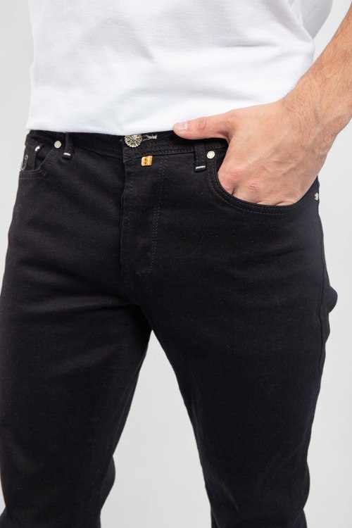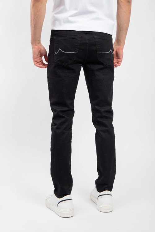 Мужские черные зауженные джинсы от Jacob Cohen (Джейкоб Коэн). Пяти-карманная модель, пояс с петлями для ремня, нашивка с логотипом на заднем кармане, зауженный крой, полная длина.