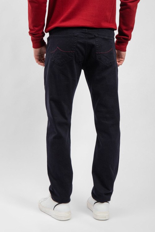 Мужские черные прямые джинсы от Jacob Cohen (Джейкоб Коэн). Пяти-карманная модель, пояс с петлями для ремня, нашивка с логотипом на заднем кармане, прямой крой, полная длина.