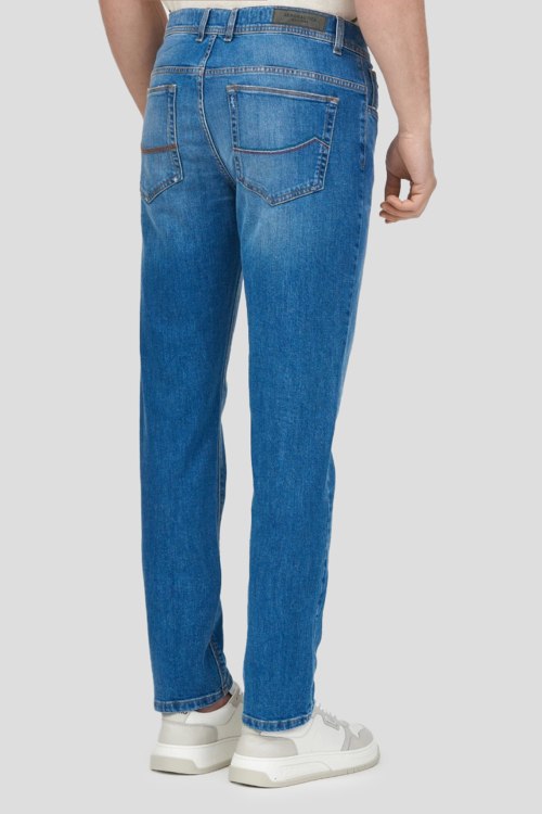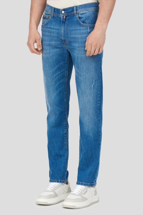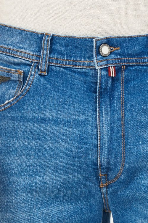 Детали: Мужские голубые прямые джинсы от Aeronautica Militare (Аэронавтика Милитари). Пяти-карманная модель, дизайн с потертостями, пояс с петлями для ремня, нашивка с логотипом сзади на поясе, прямой крой, полная длина