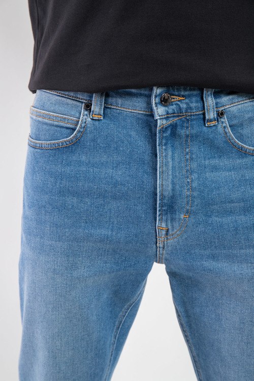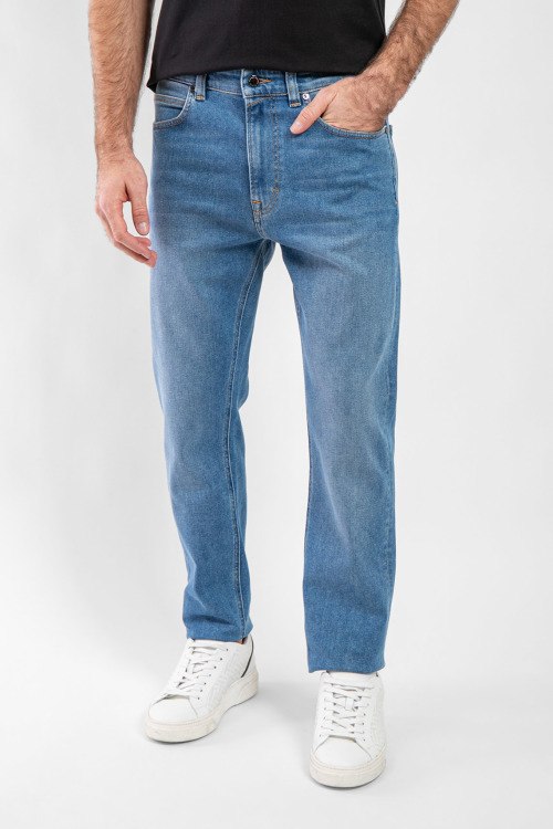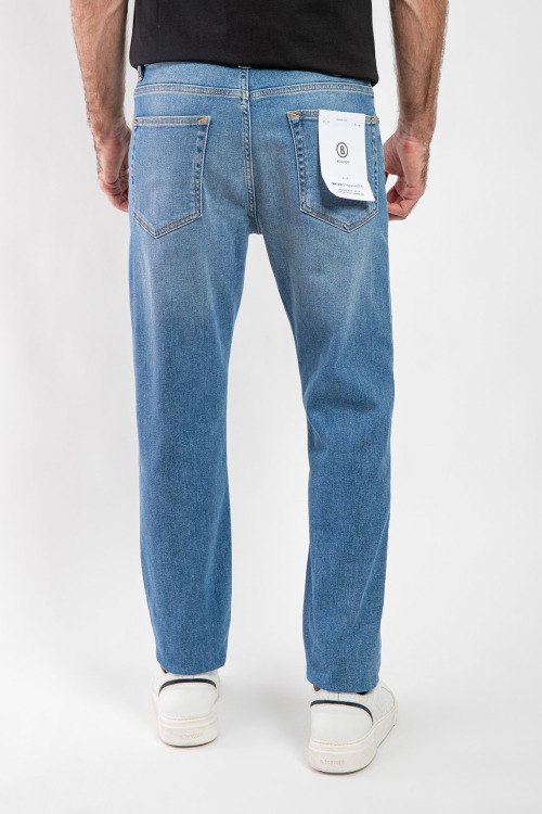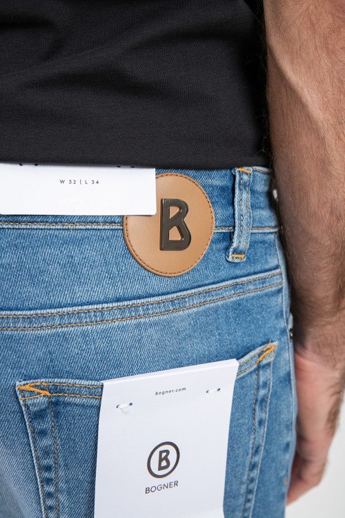 Мужские голубые джинсы Brian-G из хлопкового микса от Bogner (Богнер). Классическая длина, застежка на молнию и пуговицу, пять карманов, петли в поясе для ремня, патч-лого.