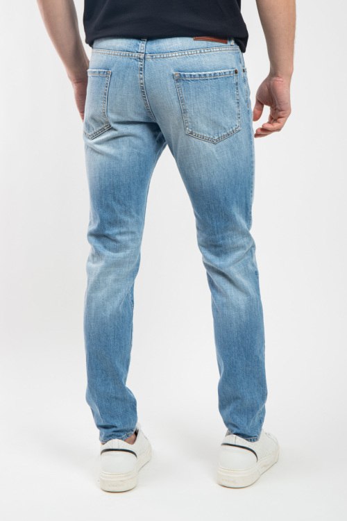 Мужские голубые джинсы Cool Guy из хлопка от Dsquared2 (Дискваред). Классическая длина, высокая посадка, застежка на пуговицу и молнию, пять карманов, петли в поясе для ремня, патч-лого.