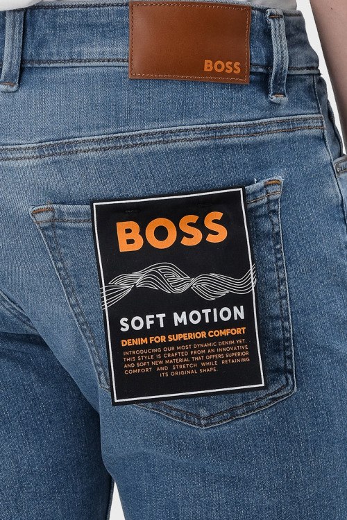Детали: Мужские голубые джинсы Delano от Hugo Boss (Хуго Босс). Пяти-карманная модель, пояс с петлями для ремня, нашивка с логотипом сзади на поясе, зауженный крой, полная длина