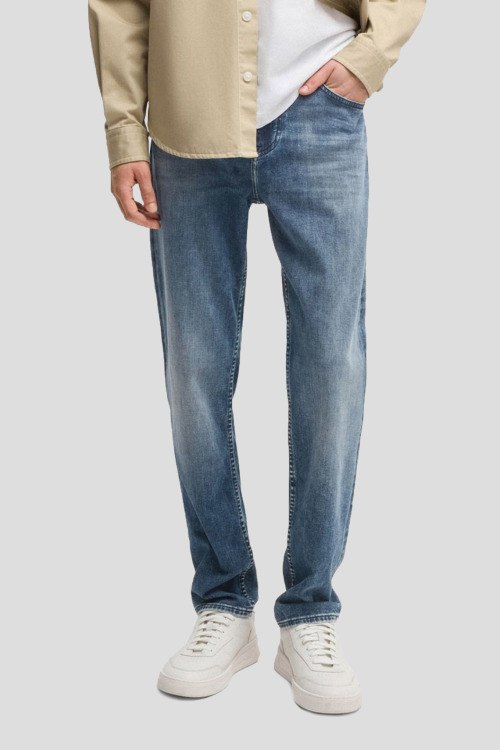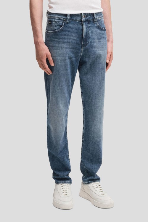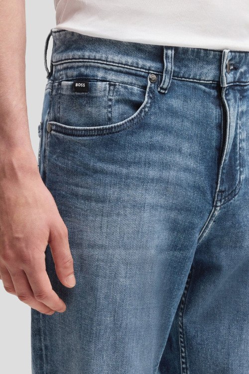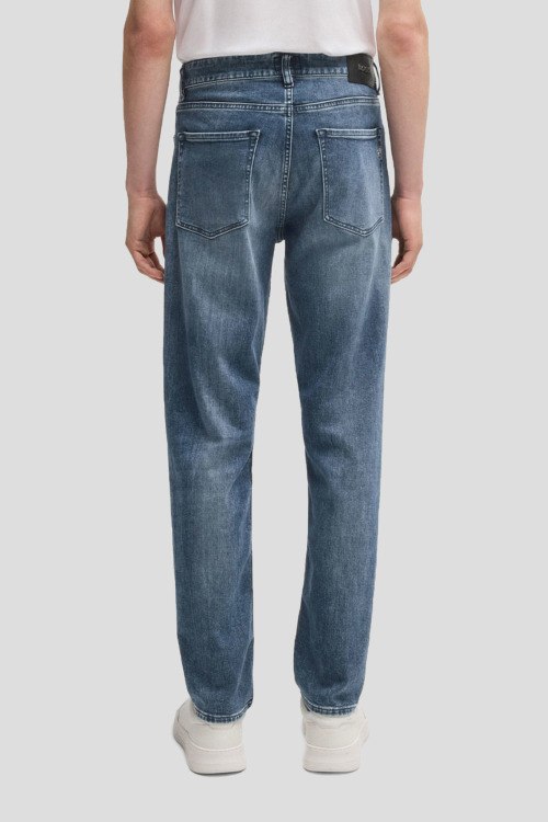 Детали: Мужские голубые джинсы C-Re.Maine от Hugo Boss (Хуго Босс). Пяти-карманная модель, пояс с петлями для ремня, нашивка с логотипом сзади на поясе, прямой крой, полная длина