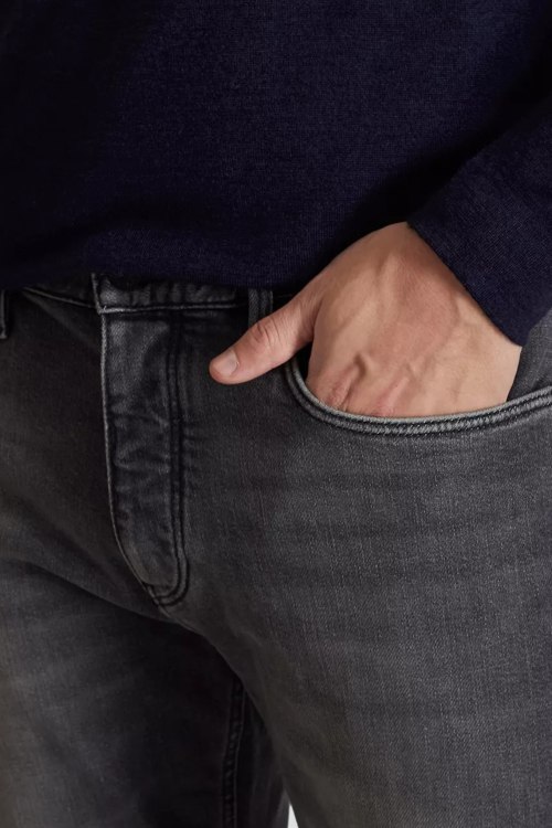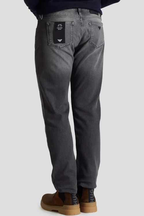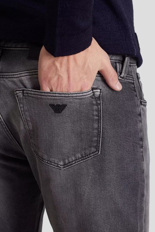 Детали: Мужские серые прямые джинсы от Emporio Armani (Эмпорио Армани). Пяти-карманная модель, пояс с петлями для ремня, нашивка с логотипом сзади на поясе, прямой крой, полная длина