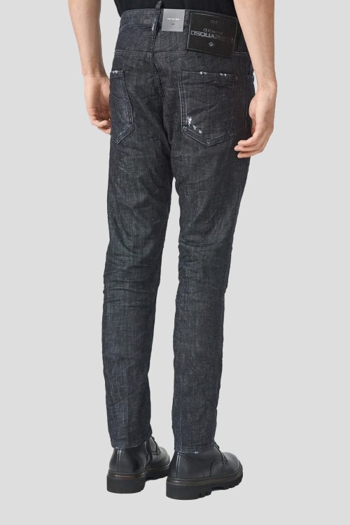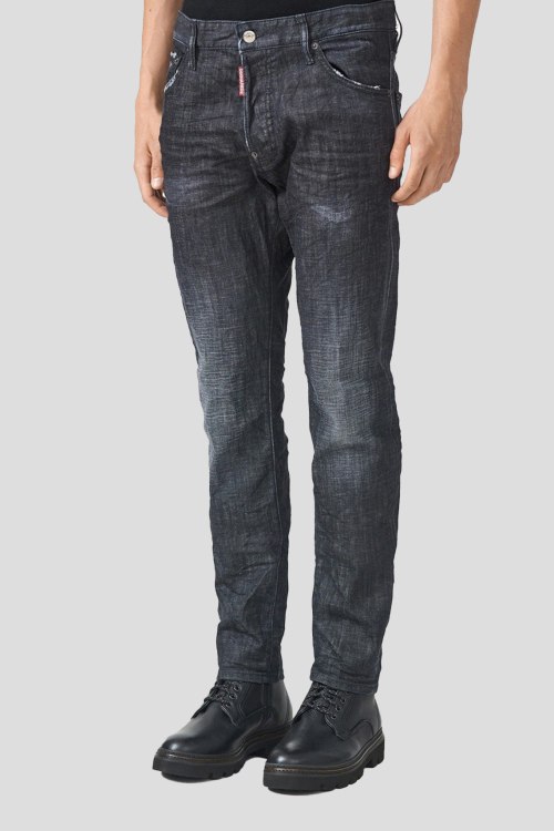 Детали: Мужские серые джинсы от Dsquared2 (Дискваред). Пяти-карманная модель, пояс с петлями для ремня, нашивка с логотипом сзади на поясе, зауженный крой, полная длина