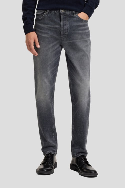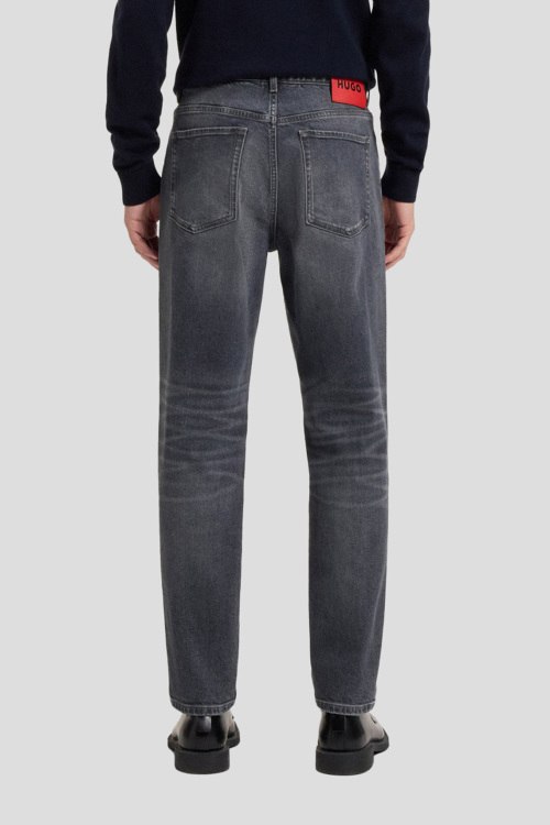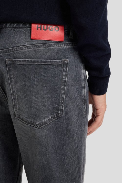 Детали: Мужские серые джинсы HUGO 634 от Hugo by Hugo Boss (Хуго бай Хуго Босс). Пяти-карманная модель, дизайн с потертостями, пояс с петлями для ремня, нашивка с логотипом сзади на поясе, прямой крой, полная длина
