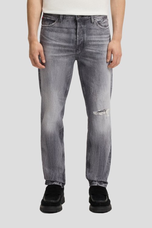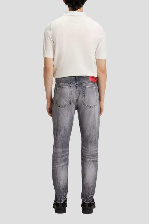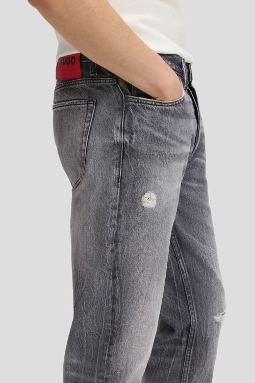 Детали: Мужские серые джинсы 634 Tapered Fit от Hugo by Hugo Boss (Хуго бай Хуго Босс). Дизайн с потертостями, пяти-карманная модель, пояс с петлями для ремня, нашивка с логотипом сзади на поясе, прямой крой, полная длина