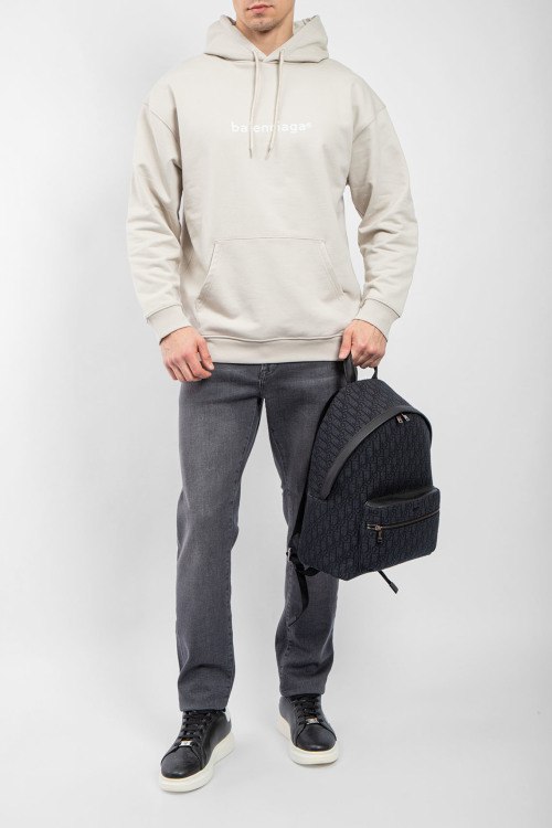 Мужские серые прямые джинсы от Jacob Cohen (Джейкоб Коэн). Пяти-карманная модель, пояс с петлями для ремня, нашивка с логотипом сзади на поясе, прямой крой, полная длина.