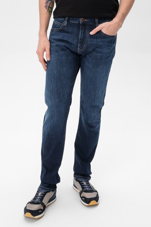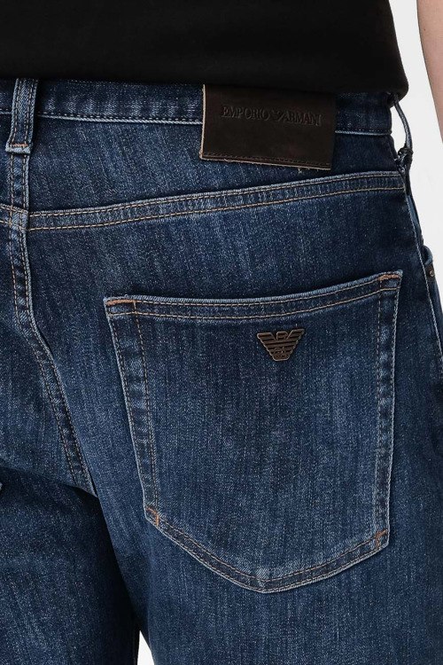 Детали: Мужские синие джинсы Regular Fit J45 от Emporio Armani (Эмпорио Армани). Пяти-карманная модель, пояс с петлями для ремня, нашивка с логотипом сзади на поясе, полная длина