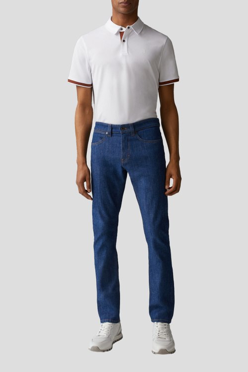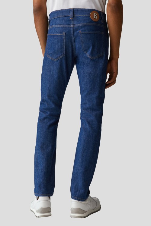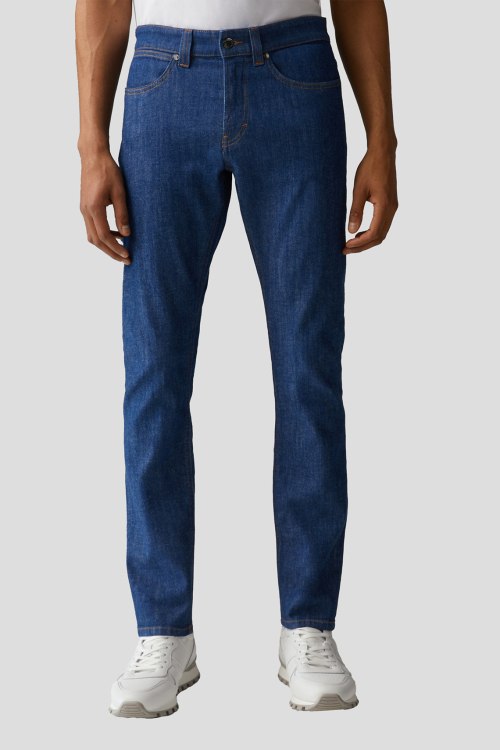 Детали: Мужские синие джинсы Steve-G от Bogner (Богнер). Пяти-карманная модель, пояс с петлями для ремня, нашивка с логотипом сзади на поясе, зауженный крой, длина 34