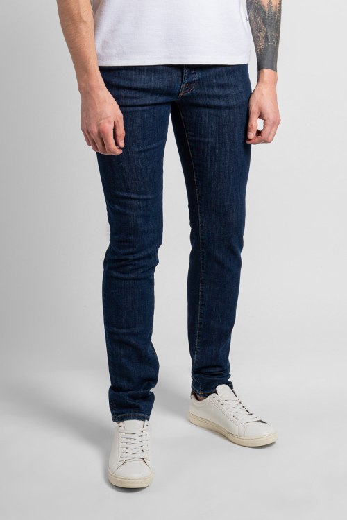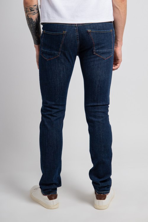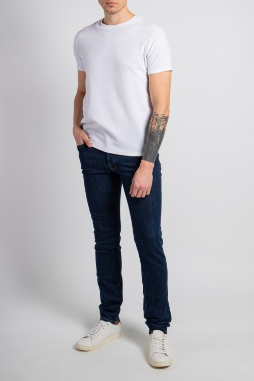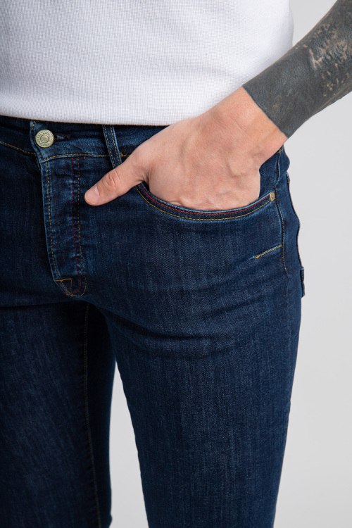 Мужские темно-синие джинсы от Daniele Alessandrini (Даниэль Алессандрини). Классическая длина, застёжка на молнию и пуговицу, пять карманов, петли в поясе для ремня.