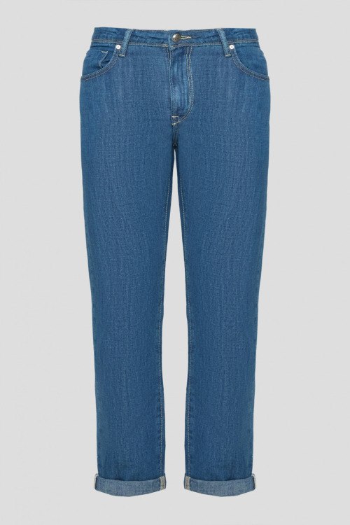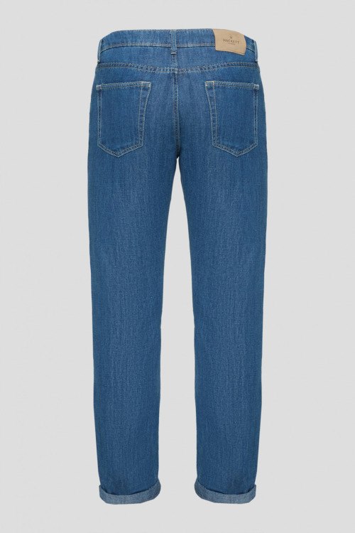 Детали: Мужские синие джинсы от Hackett (Хаккетт). Пяти-карманная модель, пояс с петлями для ремня, нашивка с логотипом сзади на поясе, прямой фасон, полная длина. Обхват пояса: для размера 32 - 80 см, обхват бедер: для размера 32 - 98 см, длина штанины: для размера 32 - 98 см, длина по шаговому шву: для размера 32 - 72 см