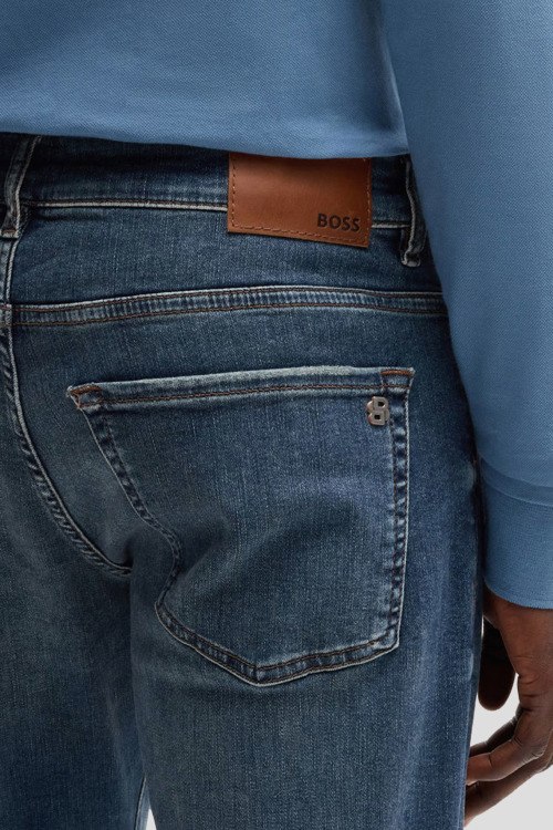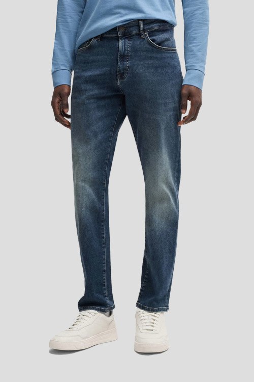 Детали: Мужские синие джинсы Maine из хлопкового микса от Hugo Boss (Хуго Босс). Классическая длина, средняя посадка, застежка на молнию и пуговицу, пять карманов, петли в поясе для ремня, патч-лого, дизайн с потертостями