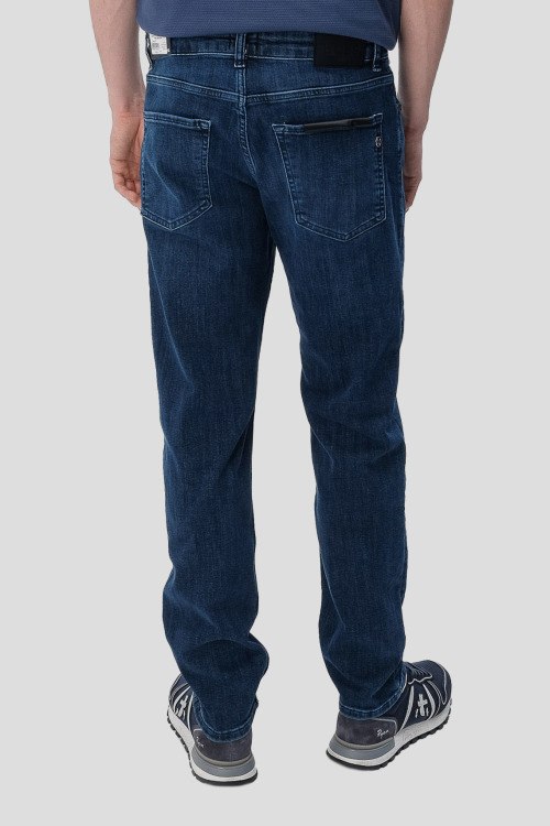 Детали: Мужские синие джинсы Regular Fit от Hugo Boss (Хуго Босс). Пяти-карманная модель, пояс с петлями для ремня, нашивка с логотипом сзади на поясе, крой Regular Fit, полная длина