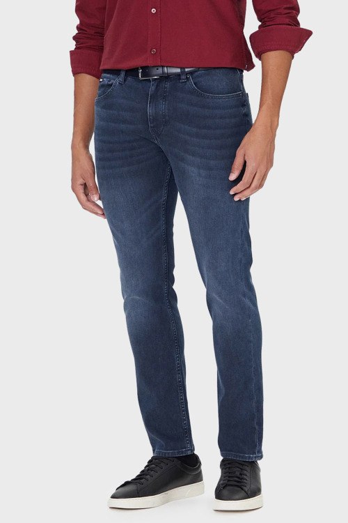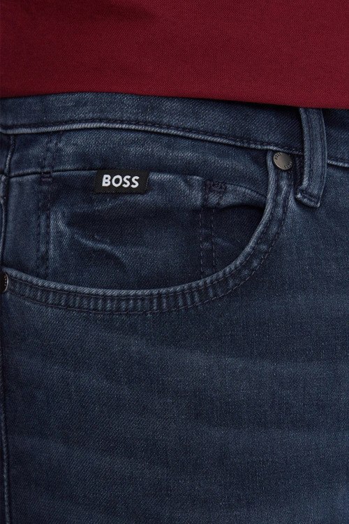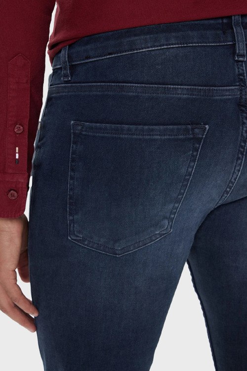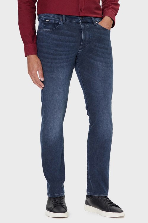 Детали: Мужские темно-синие джинсы из хлопка от Hugo Boss (Хуго Босс). Классическая длина, средняя посадка, застежка на молнию и пуговицу, пять карманов, петли в поясе для ремня