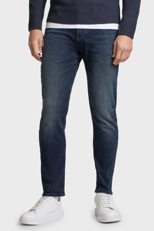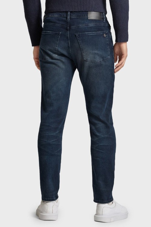 Детали: Мужские темно-синие джинсы из хлопкового микса от Hugo Boss (Хуго Босс). Модель Slim Tapered Fit, средняя посадка, застежка на молнию и пуговицу, пять карманов, петли в поясе для ремня, патч-лого, классическая длина