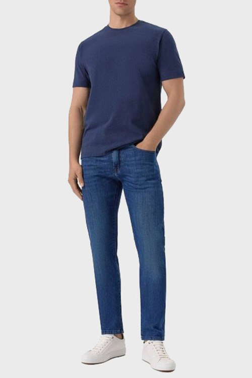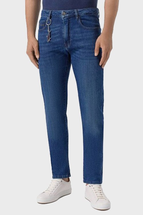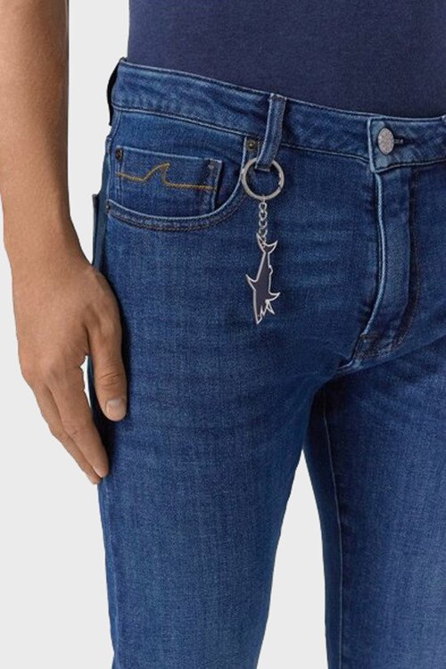 Детали: Мужские синие зауженные джинсы от Paul & Shark (Пол энд Шарк). Пяти-карманная модель, пояс с петлями для ремня, нашивка с логотипом сзади на поясе, подвеска с логотипом, зауженный крой, полная длина