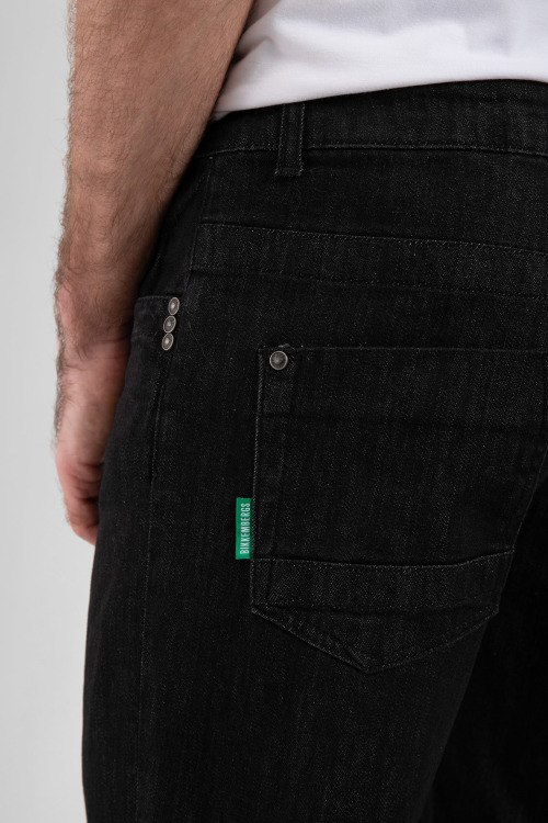 Мужские темно-серые прямые джинсы от Bikkembergs (Биккембергс). Пяти-карманная модель, пояс с петлями для ремня, нашивка с логотипом сзади на поясе, прямой крой, полная длина.