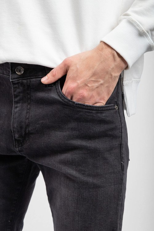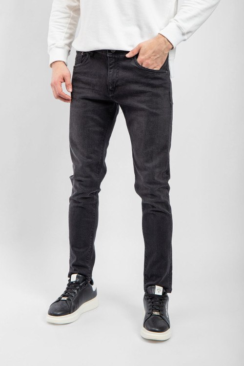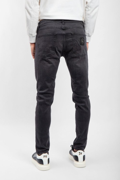 Мужские темно-серые зауженные джинсы от Dolce & Gabbana (Дольче энд Габбана). Пяти-карманная модель, пояс с петлями для ремня, нашивка с логотипом на заднем кармане, зауженный крой, полная длина.