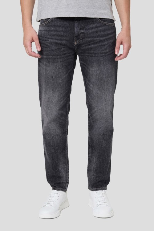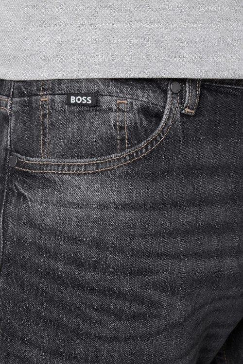 Детали: Мужские темно-серые джинсы C-Re.Maine от Hugo Boss (Хуго Босс). Пяти-карманная модель, пояс с петлями для ремня, нашивка с логотипом сзади на поясе, прямой крой, полная длина