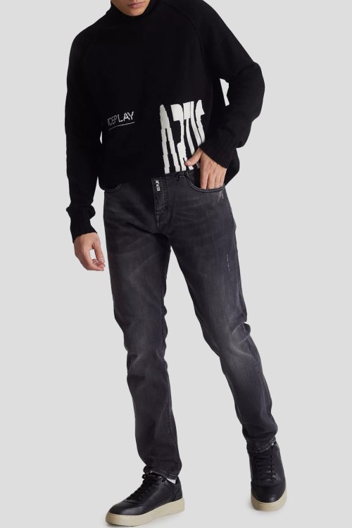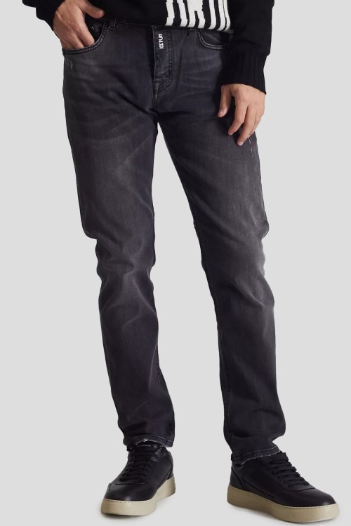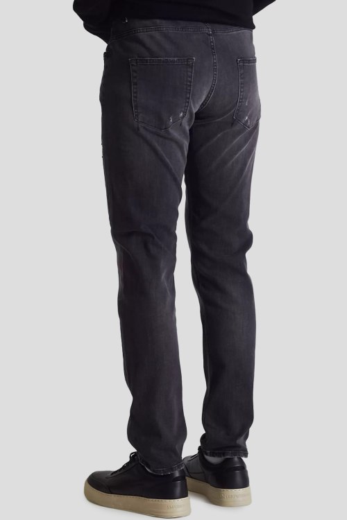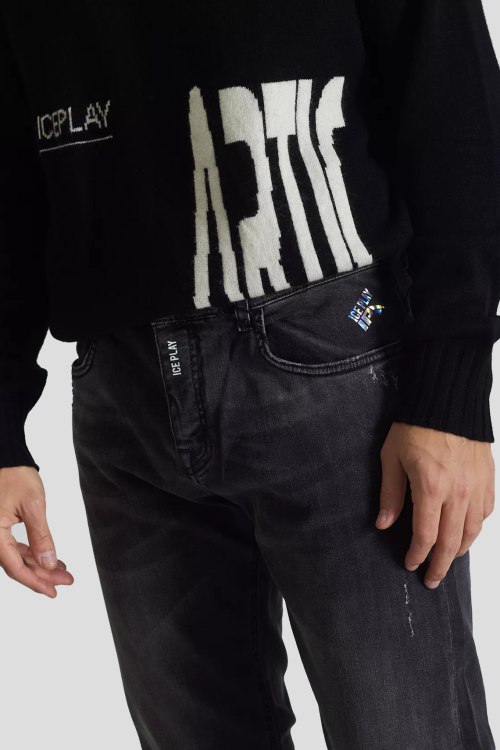 Детали: Мужские темно-серые джинсы от Ice Play (Айс Плей). Пяти-карманная модель, дизайн с потертостями, пояс с петлями для ремня, нашивка с логотипом сзади на поясе, прямой крой, полная длина